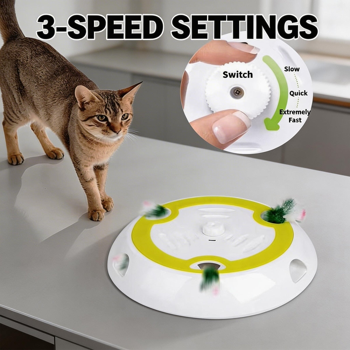 Verschiedene Geschwindigkeiten passen sich dem Spielverhalten Ihrer Katze an – von neugierig bis energiegeladen.